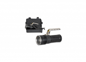 Linterna con zoom, barra led y caja abs barbaric, recargable por usb, ...