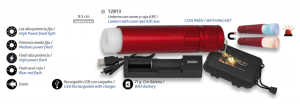 Linterna con zoom, barra led y caja abs barbaric, recargable por usb, ...