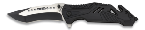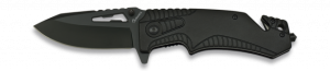 43. Navaja Asistida Martinez Albainox con Sistema de Apertura  FOS, mango de aluminio y Hoja de acero inoxidable  de 8.5 cm. Incluye clip, punta rompevidrio, cutter para cinturón y caja a color