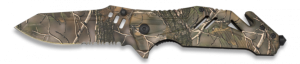 39. Navaja Asistida Martinez Albainox Camo, mango de aluminio, Sistema de apertura Fos, Hoja de acero inoxidable de 9 cm. Incluye clip y caja a color 19910-A