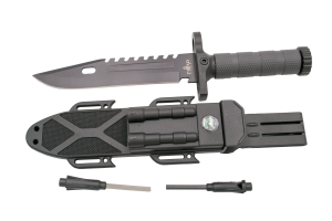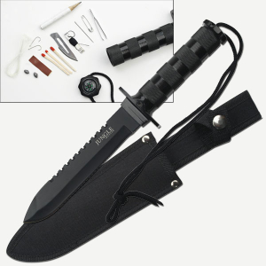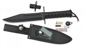 Una pieza de equipo de supervivencia es un cuchillo de supervivencia de calidad. Un buen cuchillo de supervivencia no es sólo para autodefensa, sino también una herramienta que puede proporcionarte protección, y la habilidad para cazar y preparar tu comida en situaciones de emergencia, y que también te puede ayudar a construir un refugio, y a crear pequeños objetos vitales para tu supervivencia.