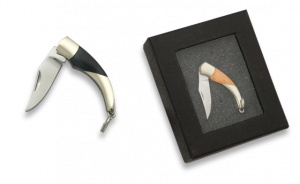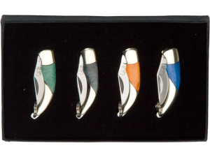 11. Set de 4 navajas miniaturas Joker con virola de latón y mango de hueso JKR0192