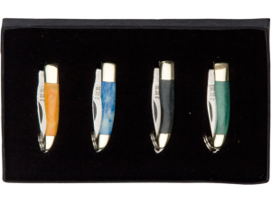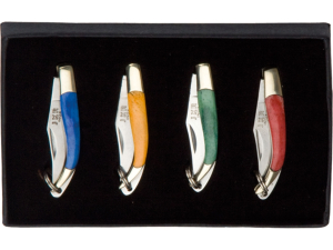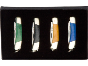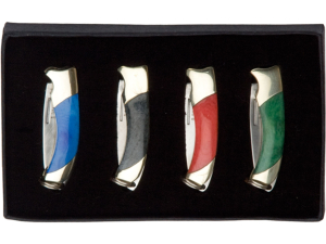 9. Set de 4 navajas miniatura Joker con virola de latón, y mango de hueso - JKR0194.