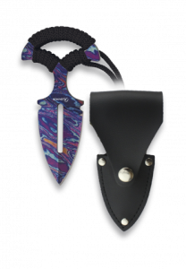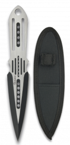 36. Cuchillo lanzador Albainox, de acero inox encordado, un solo filo, total 21,5 cm, en funda de nylon