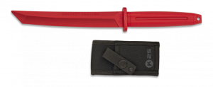 18. Cuchillo de entrenamiento K25 de color rojo, hecho de goma, hoja de 10,6 cm, en funda de nylon