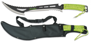 22. Machete Cortacañas Albainox Mad Zombie con hoja de 40cm y mango con encordado verde. 32436