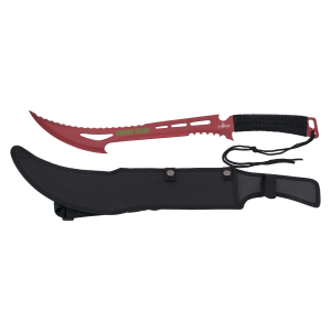 El machete es un tipo de cuchillo más grande que los normales, comúnmente mide menos de 60 centímetros y su filo es muy agudo en el tercio de cuchilla más cercano a la punta. Con el machete puedes abrir picaduras por la mata densa, cortar madera con facilidad para hacer refugios, abrir coco, defenderse de animales, entre tantas otras utilidades. La calidad del machete depende fundamentalmente del acero utilizado en el mango bien equilibrado que hace que sea una extensión del antebrazo. Los machetes son utilizados en muchas industrias para realizar trabajos manuales que una máquina no podría hacer, ya que éstos al tener filo en su punta, ser ligeros y pequeños, pueden ser utilizados sin mayores complicaciones. Generalmente el machete es confeccionado para el uso con mayor fuerza bruta, para cortar aquello que tardarías mucho más con un cuchillo. Algunos tienen formatos de espadas, medieval, militar, tácticos, entre otros. En Desenfunda encontrarás el machete que buscas para que puedas disfrutar de tu aventura. Todos nuestros machetes son de alta calidad porque trabajamos con las mejores marcas del mercado.
