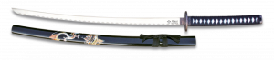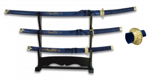 3. Juego De Katanas de decoración Serie Dragón En Color Azul con hoja de carbono . Incluye peana 31515-AZ