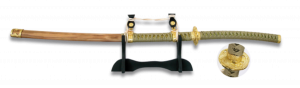 8. Katana Japonesa Color Madera con Hoja de acero de Carbono longitud de 69 cm. Incluye peana 31716