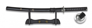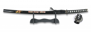 17. Katana Tole10 Ninja hoja de acero de carbono de 65 cm de color Negro con peana de madera 32161