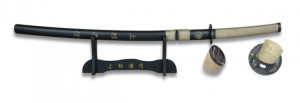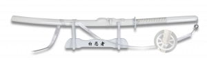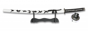 16. Katana Tole10 Ninja Blanca  con hoja de acero de carbono de 67 cm, con Peana de madera 32226