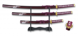 Set de 3 Katana Tole10 Lady hoja de acero carbono con Peana 32222
