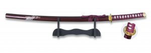 2. Conjunto Katanas Japonesas Motivo Dragón de Color Rojo, Hoja de acero de carbono. Incluye Peana 31515-RO