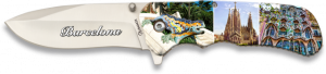 13. Navaja Martínez Albainox de Impresión Fotográfica 3d Barcelona con mango de Madera y Aluminio, hoja de acero inoxidable de 9 cm , presentada en caja de color 18143