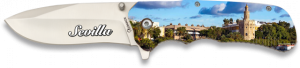 15. Navaja Martinez Albainox de Impresión Fotográfica 3d Sevilla con mango de Madera y Aluminio, hoja de acero inoxidable de 9 cm en caja a color 18153