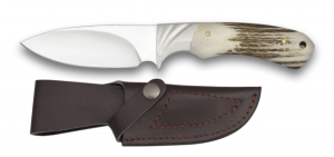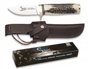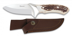 4. Cuchillo de Caza con Mango de Asta de Ciervo y Hoja en Acero 440 de 11 cm. Incluye funda de piel  31660