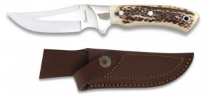 10. Cuchillo para Cazador con Mango en Asta De Ciervo y Hoja en Acero 440 de 17 cm. Incluye funda de piel 31658
