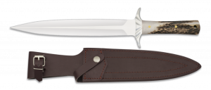 7. Cuchillo de Remate - Rematador Mango Ciervo hoja de 23.5 cm, tamaño total 37cm incluye funda de piel