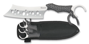 30. Hoz Mad Zombie, mango encordado, hoja de acero inox de 19 cm, en funda de nylon