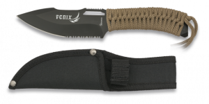 21. Cuchillo Táctico Martinez Albainox con mango encordado Coyote Modelo  Fenix con hoja de acero inox de 10.5 cm, con funda de nylon 32210