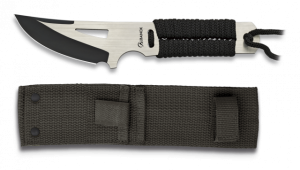 24. Cuchillo  Táctico Martinez Albainox Modelo Apalachee con mango encordado hoja de acero inoxidable de  8.3 cm incluye funda de nylon 32251