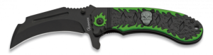 Navaja albainox verde, apertura fos, calavera fuego, hoja de 9 cm, con...