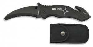 18. Navaja Táctica de Seguridad Negra Martinez Albainox con mango de aluminio y hoja de acero inoxidable de 8.5 cm. Incluye clip, punta rompevidrio, cutter cinturón de seguridad y funda de nylon. 19981 Navaja Táctica de Seguridad Negra Martinez Albainox con mango de aluminio y hoja de acero inoxidable de 8.5 cm. Incluye clip, punta rompevidrio, cutter cinturón de seguridad y funda de nylon. 19981