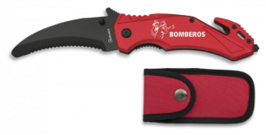 21. Navaja Táctica de Seguridad Roja Martinez Albainox con mango de aluminio y hoja de acero inoxidable de 8.5 cm. Incluye punta rompevidrio, cutter cinturón seguridad y funda de nylon 19982GR274