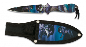 8. Cuchillos Lanzador impresión Fotográfica 3d Lobo, hoja de acero inox , tamaño 17 cm con funda nylon
