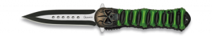29. Navaja Asistida Martinez Albainox con mango de aluminio de color Verde Calavera con hoja de acero inoxidable de un solo filo de 8.8cm. Incluye clip y caja a color 18282