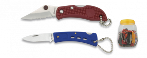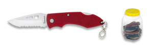 41. Bote Surtido de Navaja 36 Pz Martínez Albainox con Cacha de Pvc y Cadena, Hoja de 5 cm en Colores Naranja y Azul 10932