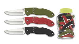38. Bote de 24 navajas surtidas Albainox, hoja de 8 cm, en color verde, negro y rojo
