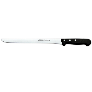 El Cuchillo Jamonero. Se trata de un cuchillo especialmente diseñado para cortar jamón, tambien vale para cortar otras piezas grandes de carne, pero su fama es por el jamón. Son extremadamente largos, delgados y con la hoja muy flexible, y un filo liso.