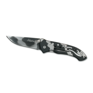 3. Navaja Alpino de color camuflaje negro y mango decorado y hoja de 8 cm. 15003