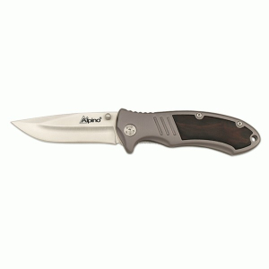 40. Navaja Táctica Alpino con hoja de acero 4202J de 8,5 cm, con mango de aluminio y madera. Incluye Caja de Aluminio 15026