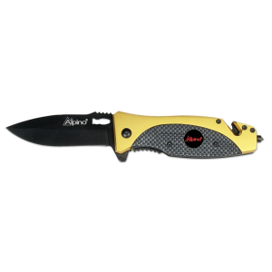 36. Navaja de rescate Alpino Con Hoja de acero 420J2 y Titanio de 10 cm, con mango de poliamida en Caja de Aluminio 15031