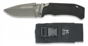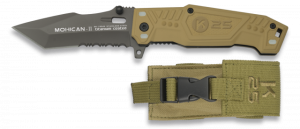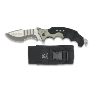 29. Navaja Táctica K-25 Acu Rui con Hoja de Acero Inox recubierto de Titanium de 9.3 cm. Incluye Punta Rompevidrio, Clip y Funda de Nylon 19220