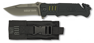24. Navaja Táctica Rui, Mango de Aluminio, Hoja de 5,5 cm de Acero Inox. Incluye Punta Rompevidrio, Cutter Cinturón Doble, Colgante Kydex , Funda y caja a color 19652