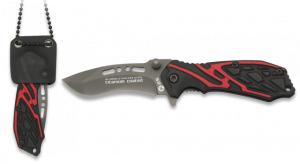 41. Navaja Asistida K25 color roja/negra, mango  recubierto de goma, con sistema de apertura Fos, hoja de acero inoxidable con baño de Titanio de 9.4 cm. Incluye cutter cinturón doble, punta rompevidrio, funda nylon y caja a color 19653AGR1010 Navaja Asistida K25 color roja/negra, mango  recubierto de goma, con sistema de apertura Fos, hoja de acero inoxidable con baño de Titanio de 9.4 cm. Incluye cutter cinturón doble, punta rompevidrio, funda nylon y caja a color 19653AGR1010