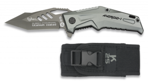 39. Navaja Asistida K25 Android, con mango de aluminio, incluye Pin K25 , Sistema de Apertura Fos, Hoja de acero inoxidable con baño de Titanio de 8.7 cm. Incluye funda de nylon 19933-A