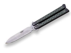 13. Navaja de abanico JKR, mango de Fibra verde y negro, hoja satinada de acero inox de 10 cm de un solo filo, JKR642