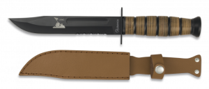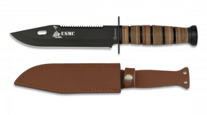 7. Cuchillo táctico Albainox USMC, mango de piel, hoja de acero inox de 18 cm, funda de piel