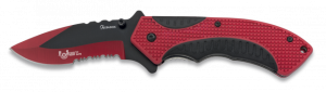 26. Navaja Asistida Martinez Albainox con mango de goma-ABS, sistema de apertura Fos, hoja de acero inoxidable de 8,5 de colores Negra y Rojo. Incluye Clip y caja a color 18083-A