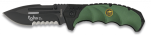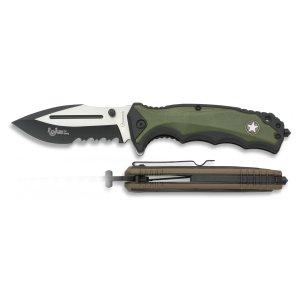 20. Navaja Asistida Army Martinez Albainox de color Verde, con mango de aluminio, sistema FOS y Hoja de acero inoxidable de  9.2 cm, en caja a color  19852-A