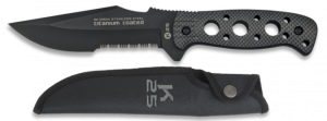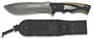 21. Cuchillo Táctico K25 con mango SFL, hoja de acero inoxidable recubierto camo de 14 cm , con Sierra. Incluye funda de nylon 32162