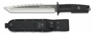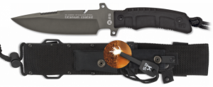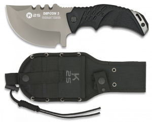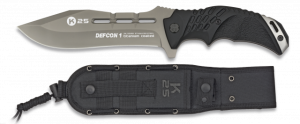 8. Cuchillo Táctico con mango SFL Modelo  Defcon, hoja de acero inoxidable con baño de Titanio de 10 cm. Incluye funda de nylon 32170