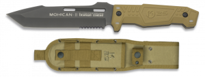 38. Cuchillo Táctico Rui Mohican II, Hoja de Acero Inox con baño de Titanio de 15.8 cm, Mango de Aluminio recubierto de goma, color Coyote. Incluye Funda de Nylon y Fibra de Vidrio 31995