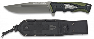 15. Cuchillo Táctico K25 con mango de aluminio , hoja de acero inoxidable recubierto camo de 14 cm con sistema de apertura rápida y funda de nylon 32167