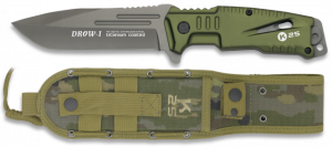 Cuchillo táctico k25 modelo drow-i con mango de aluminio verde y hoja ...