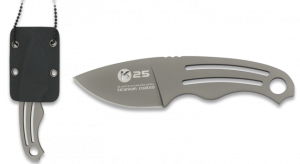 12. Cuchillo Táctico  K25 con mango de acero inox y hoja con baño de Titanio de 14.1 cm. Incluye como accesorio colgante Kydex 32179